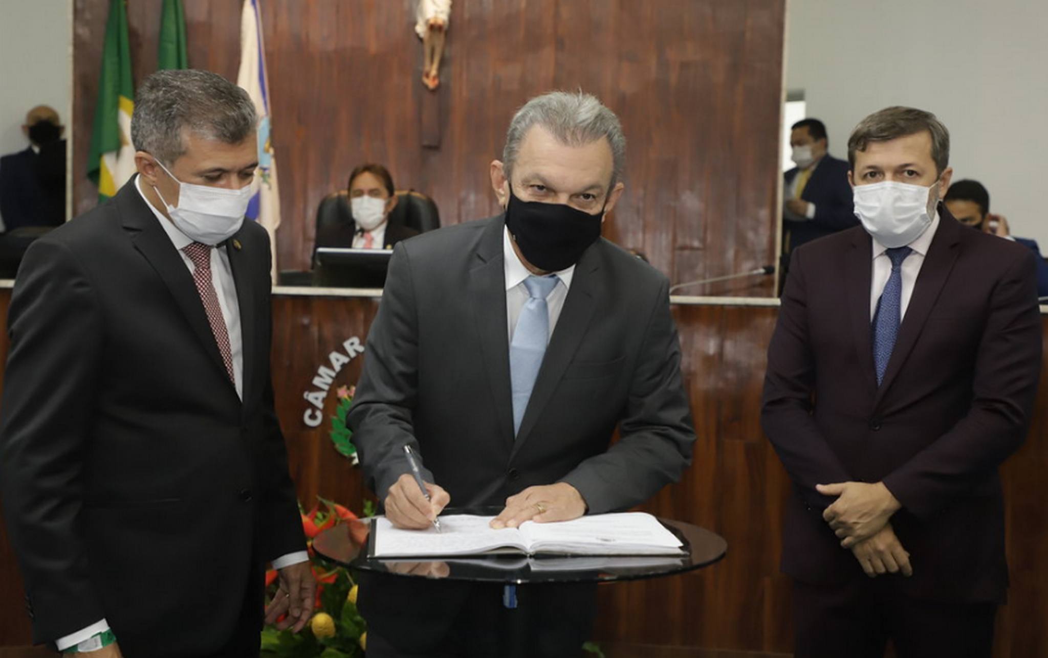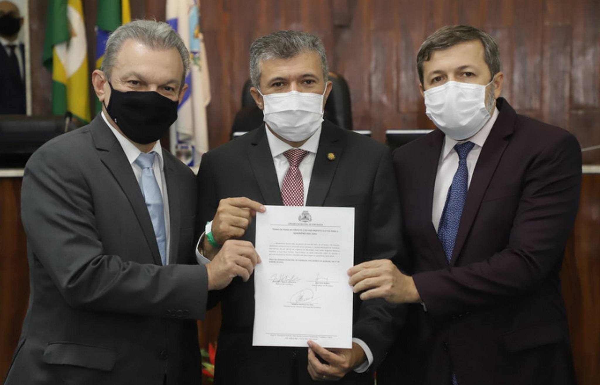 O prefeito de Fortaleza, José Sarto, e o vice, Élcio Batista, foram empossados na tarde desta sexta-feira (01/01) no plenário da Câmara Municipal de Fortaleza pelo presidente da Casa, vereador Antônio Henrique, reeleito por unanimidade, minutos antes, para mais um mandato à frente do legislativo municipal. Em seu discurso de posse, Sarto garantiu que manterá o diálogo aberto, franco e republicano em todos os planos, nacional, estadual e municipal, a fim de defender os interesses da Capital; reafirmou compromisso com a redução de desigualdades e enfatizou a importância de políticas de geração de emprego e renda, especialmente para mulheres e jovens.De acordo com Sarto, a gestão do prefeito Roberto Cláudio combateu as desigualdades com obstinação, alcançando resultados em todas as áreas, como educação, saúde, habitação, mobilidade urbana e outros. Mesmo com muitos avanços, disse Sarto, há muito a se fazer. “Por isso, nossa responsabilidade é trabalhar dia e noite, todo dia, para reduzirmos ainda mais a diferença entre as condições de vida dos mais ricos e dos mais pobres. Sobretudo, porque essa distância foi acentuada pela pandemia do Covid-19”, ressaltou. Diante desse cenário, Sarto enfatizou que 2021 renova as esperanças, mas impõe grandes provações, principalmente nas áreas de saúde, economia e educação.