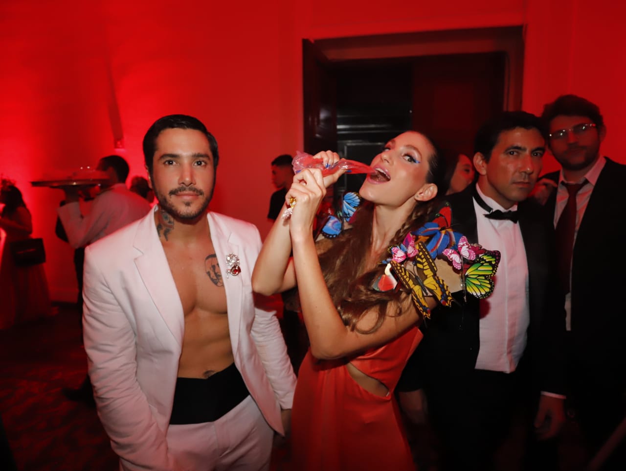 Na outra ala da festa, a Escola de Samba da Mangueira trouxe baterias e passistas para o meio da pista. Mais tarde, a Grande Rio também teve seu momento de glória no Baile e ferveu os convidados com muito batuque.
